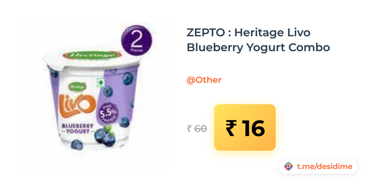 73% off on - ZEPTO : Heritage Livo Blueberry Yogurt Combo - Rs. 16