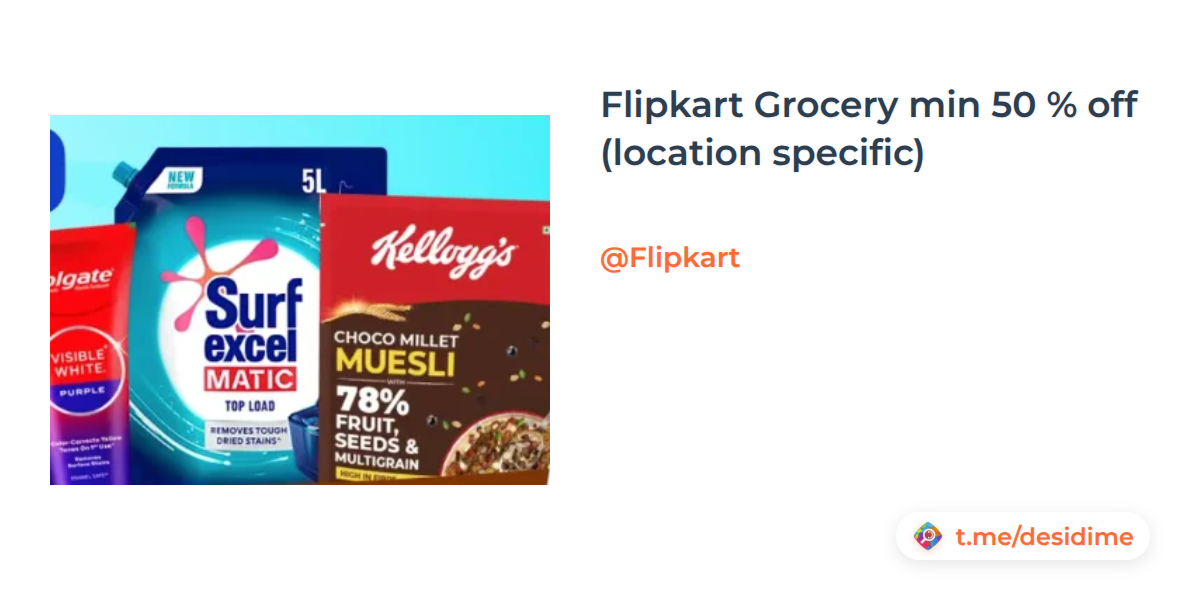 Flipkart Grocery min 50 % off (location specific)