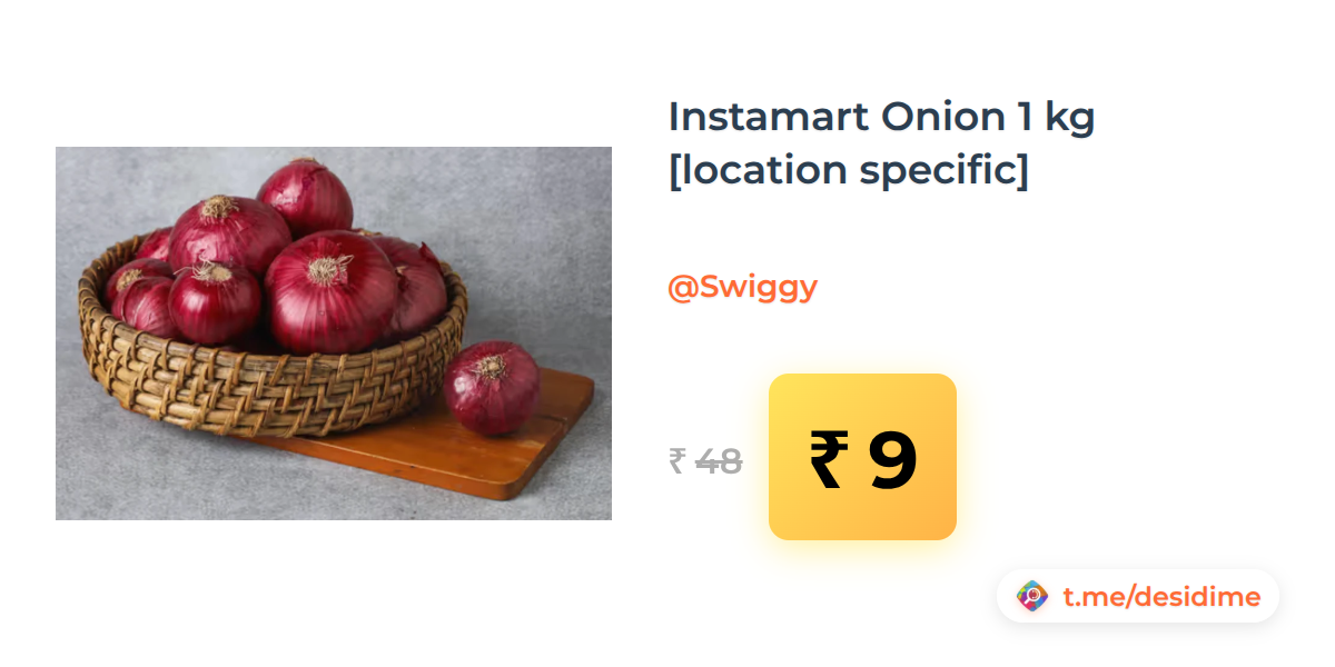 81% off on - Instamart Onion 1 kg [location specific] - Rs. 9