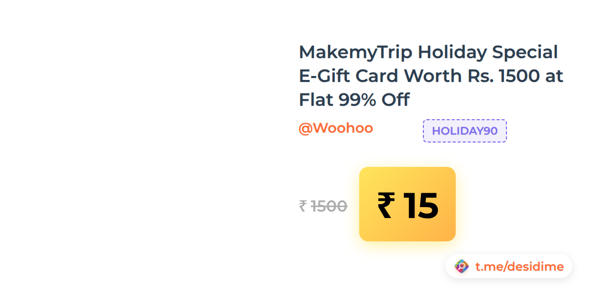 99% off on - MakemyTrip Holiday Special E-Gift Card Worth Rs. 1500 at Flat 99% Off - Rs. 15