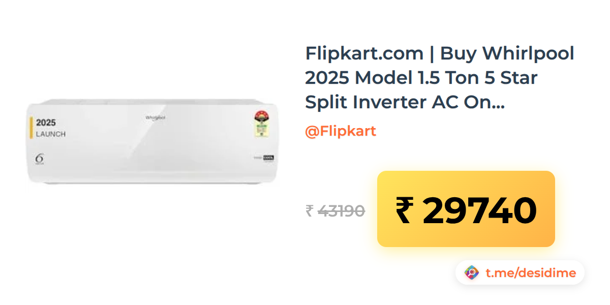 31% off on - Flipkart.com | Buy Whirlpool 2025 Model 1.5 Ton 5 Star Split Inverter AC Online at best Prices In India - Rs. 29740