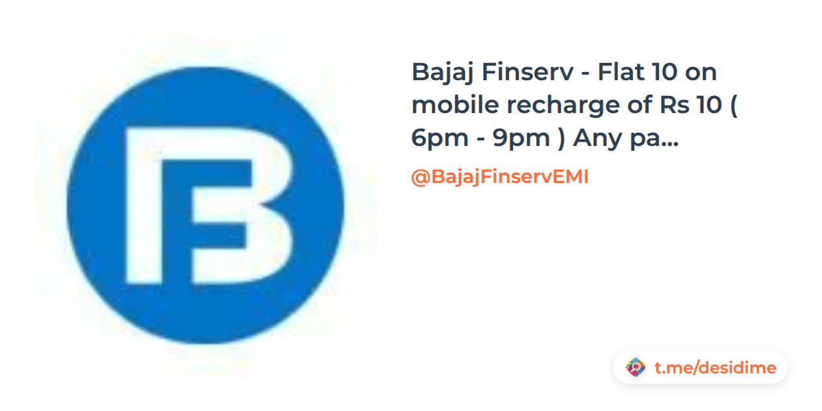Bajaj Finserv - Flat 10 on mobile recharge of Rs 10 ( 6pm - 9pm ) Any payment mode