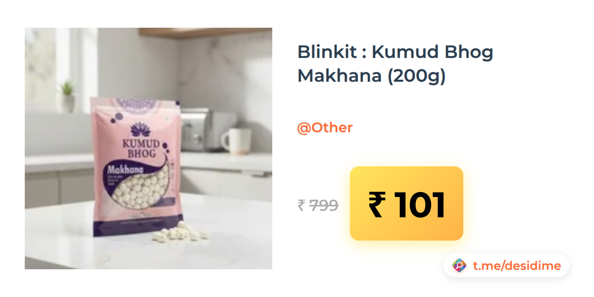 87% off on - Blinkit : Kumud Bhog Makhana (200g) - Rs. 101