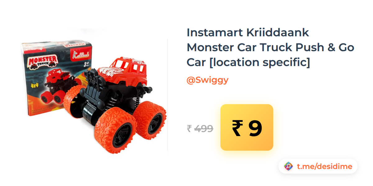 98% off on - Instamart Kriiddaank Monster Car Truck Push & Go Car [location specific] - Rs. 9