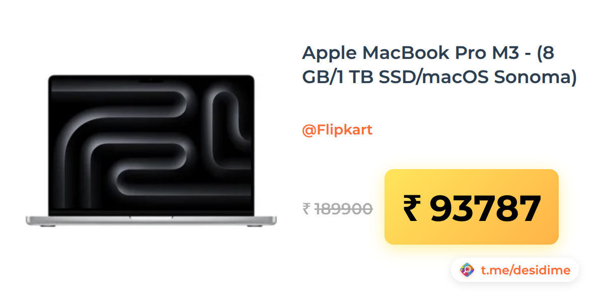 51% off on - Apple MacBook Pro M3 - (8 GB/1 TB SSD/macOS Sonoma) - Rs. 93787