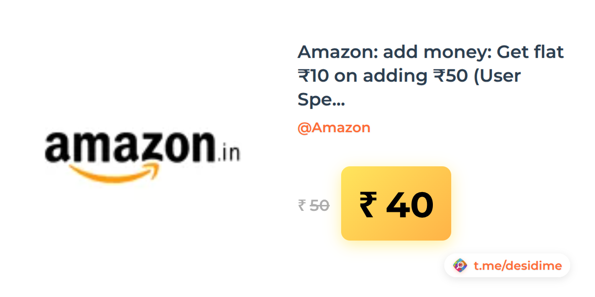 20% off on - Amazon: add money: Get flat ₹10 on adding ₹50 (User Specific) - Rs. 40