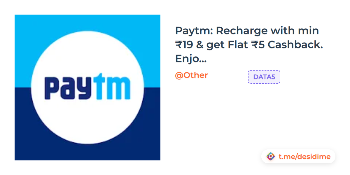 Paytm: Recharge with min ₹19 & get Flat ₹5 Cashback. Enjoy IND vs USA Live. Code: DATA5