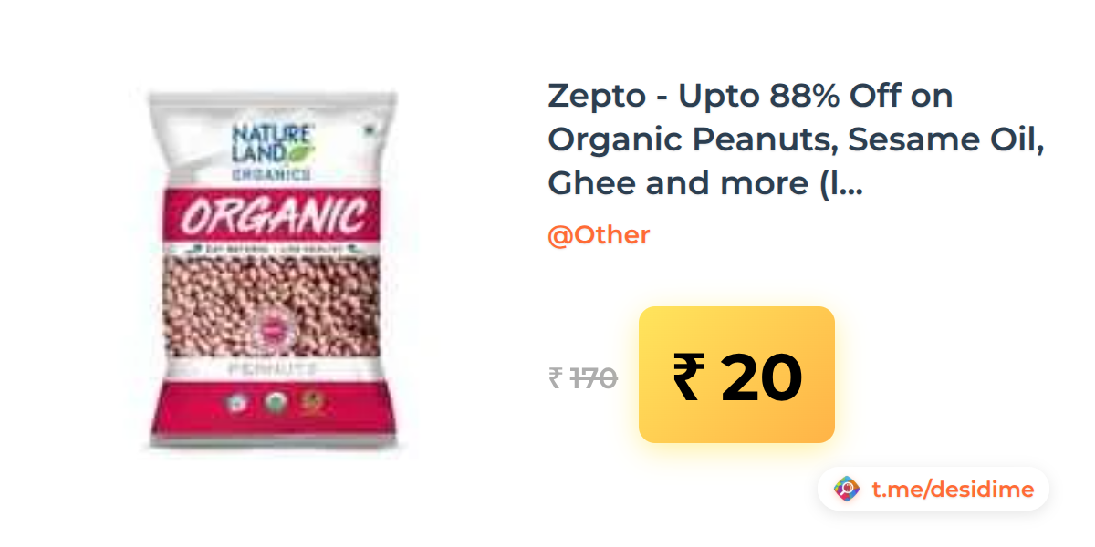 88% off on - Zepto - Upto 88% Off on Organic Peanuts, Sesame Oil, Ghee and more (location specific) - Rs. 20