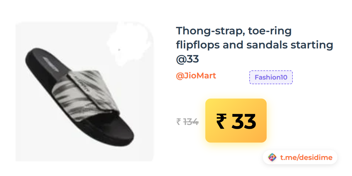 75% off on - Thong-strap, toe-ring flipflops and sandals starting @33 - Rs. 33