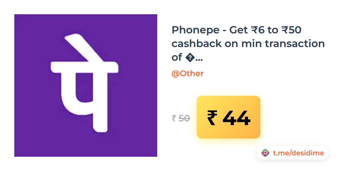 12% off on - Phonepe - Get ₹6 to ₹50 cashback on min transaction of ₹50 using rupay credit card (valid 10 times) - user specific - Rs. 44