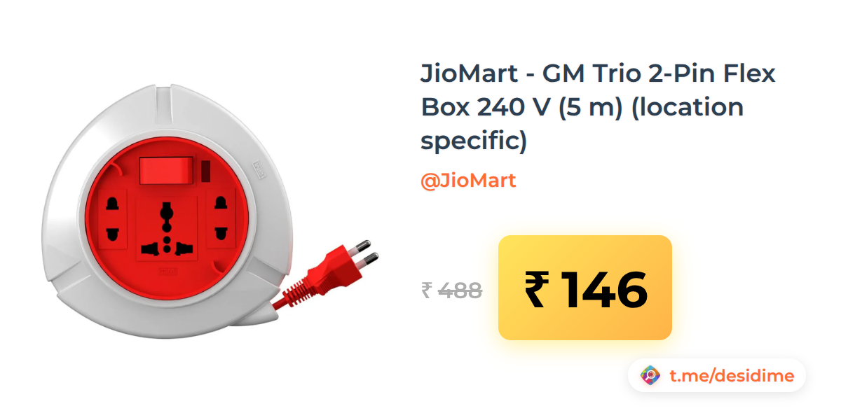 70% off on - JioMart - GM Trio 2-Pin Flex Box 240 V (5 m) (location specific) - Rs. 146