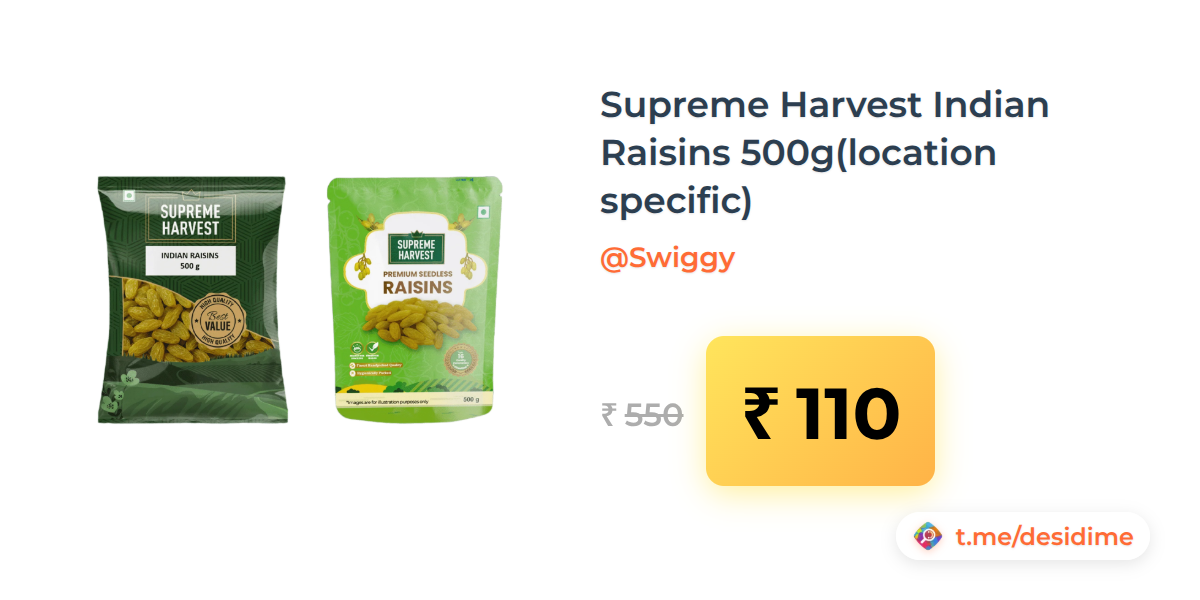 80% off on - Supreme Harvest Indian Raisins 500g(location specific) - Rs. 110