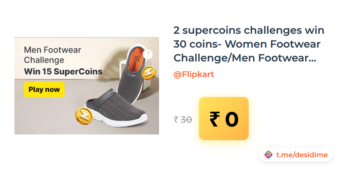 100% off on - 2 supercoins challenges win 30 coins- Women Footwear Challenge/Men Footwear Challenge - Rs. 0