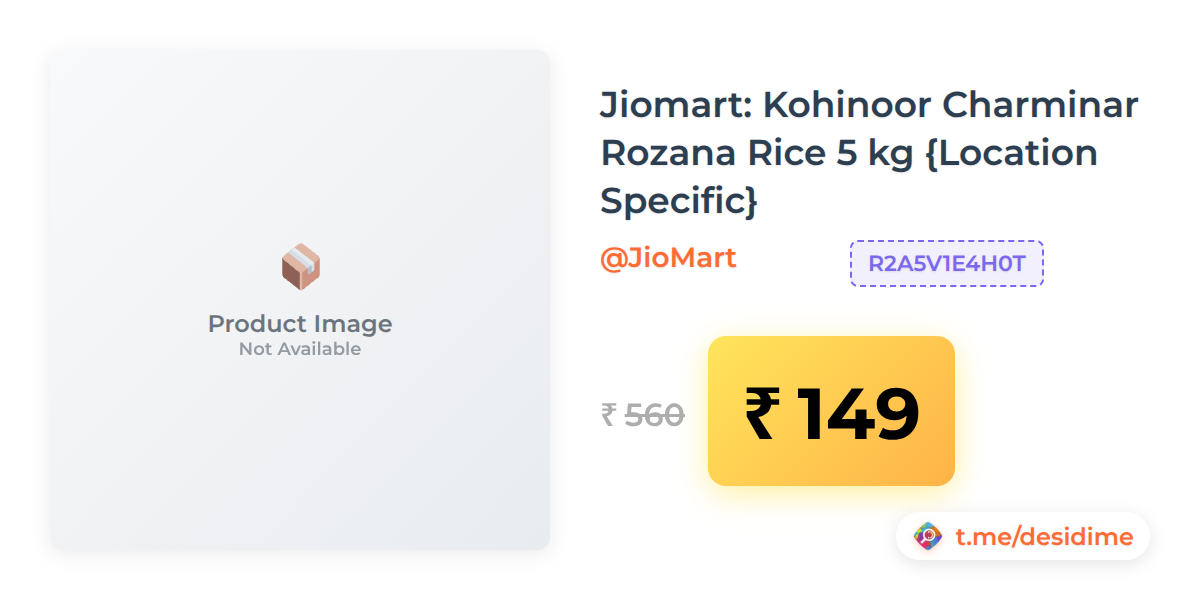 73% off on - Jiomart: Kohinoor Charminar Rozana Rice 5 kg {Location Specific} - Rs. 149