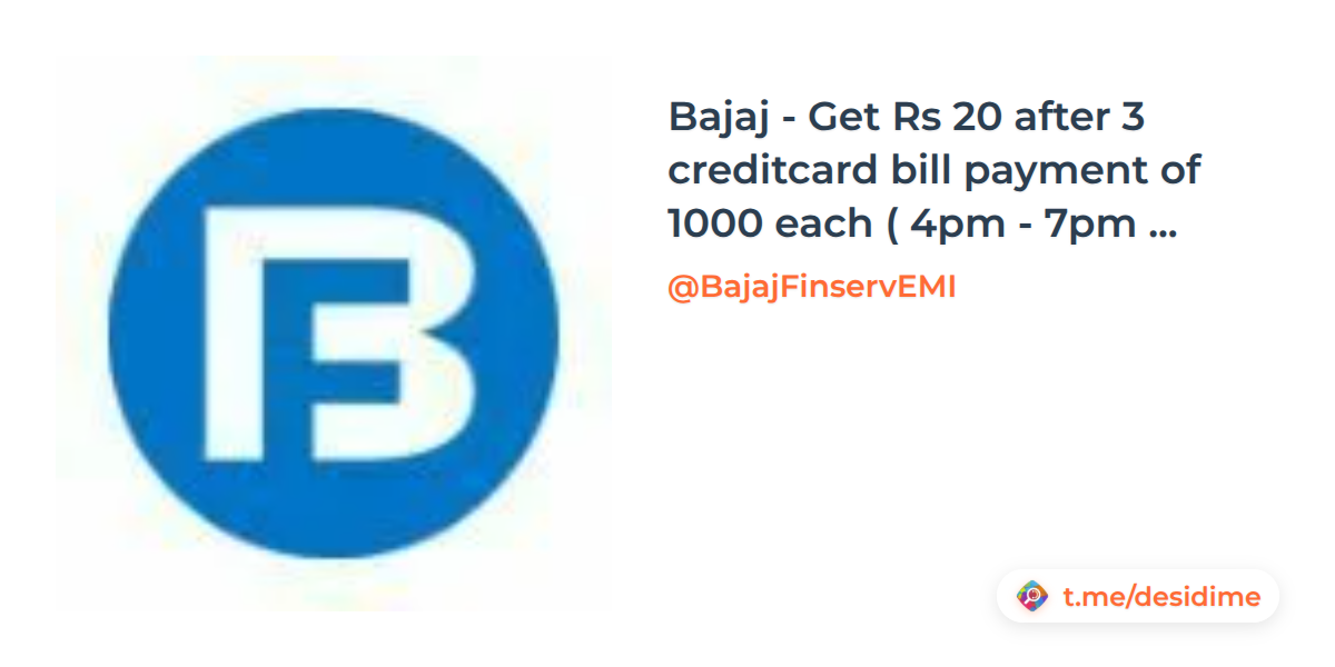 Bajaj - Get Rs 20 after 3 creditcard bill payment of 1000 each ( 4pm - 7pm ) Any payment mode