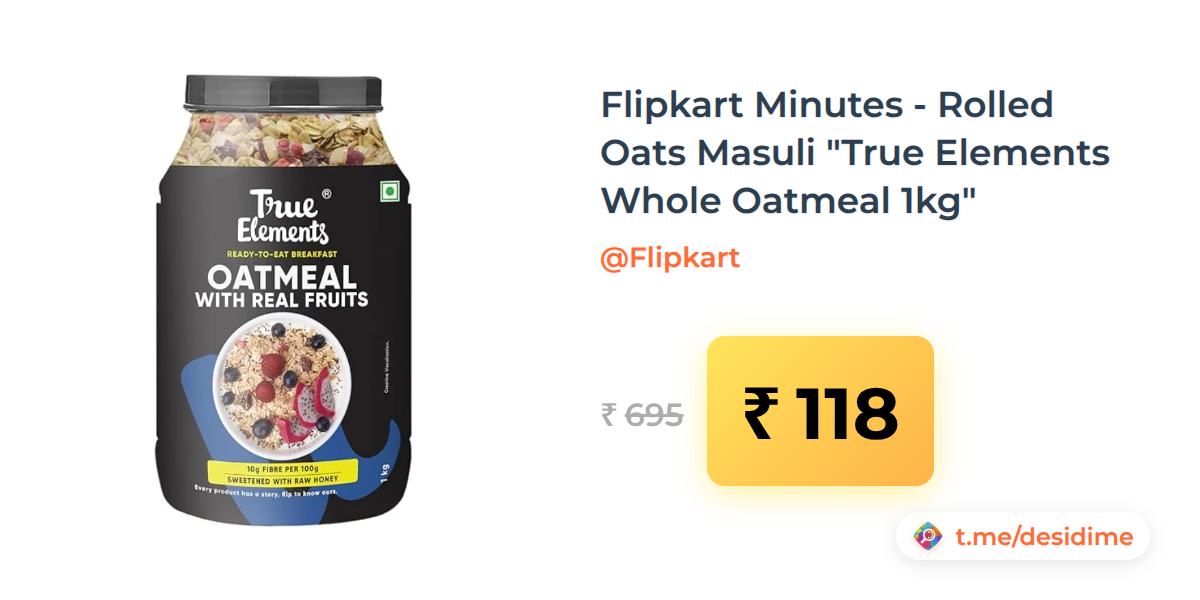 83% off on - Flipkart Minutes - Rolled Oats Masuli "True Elements Whole Oatmeal 1kg" - Rs. 118