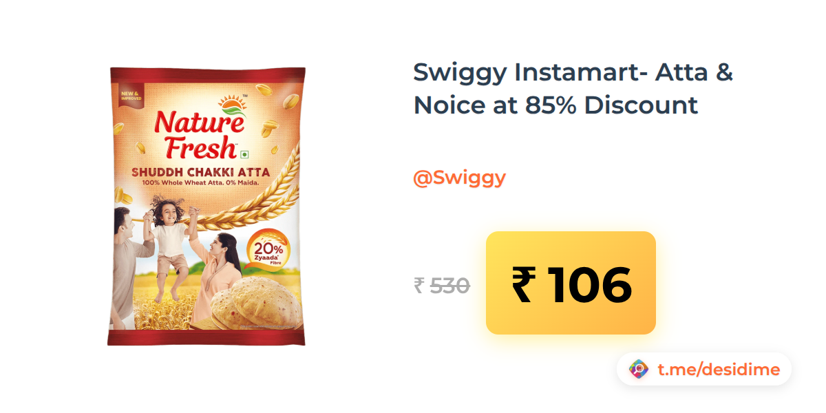 80% off on - Swiggy Instamart- Atta & Noice at 85% Discount - Rs. 106