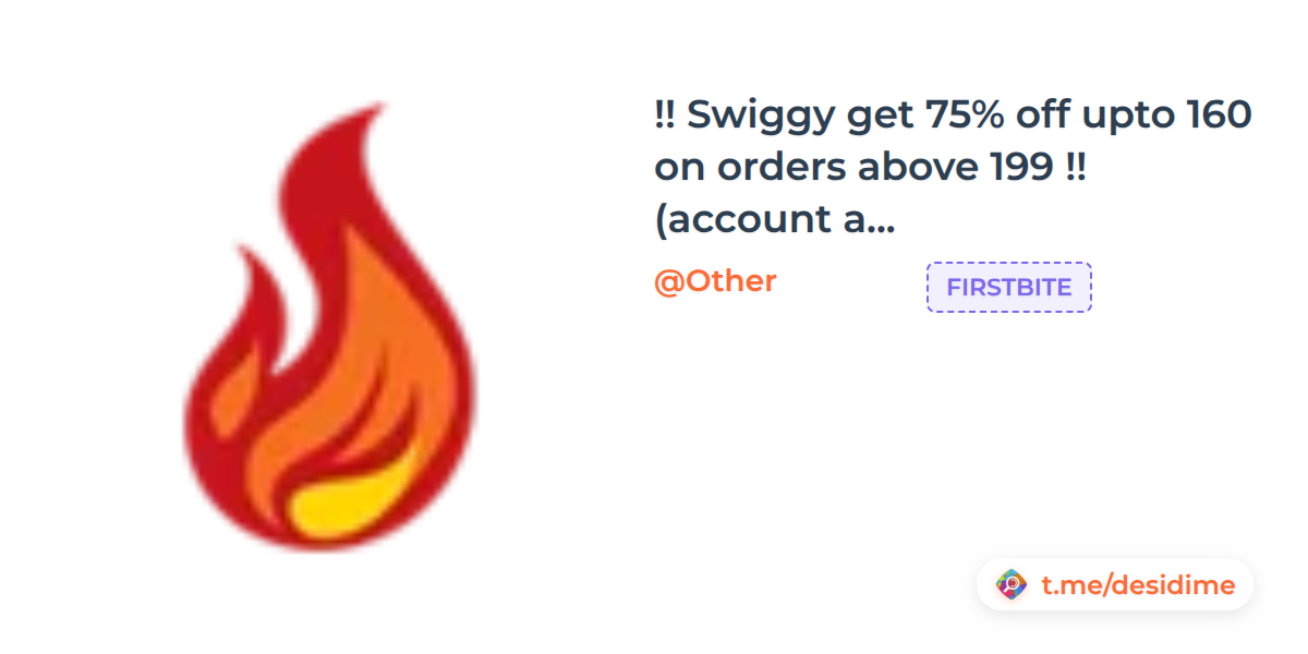 🌡246° - Swiggy get 75% off upto 160 on orders above 199 !! (account and restaurant specific)