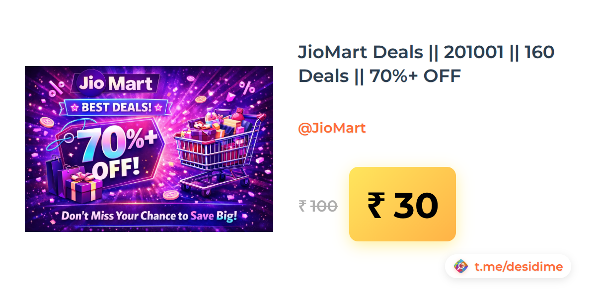 70% off on - JioMart Deals || 201001 || 160 Deals || 70%+ OFF - Rs. 30