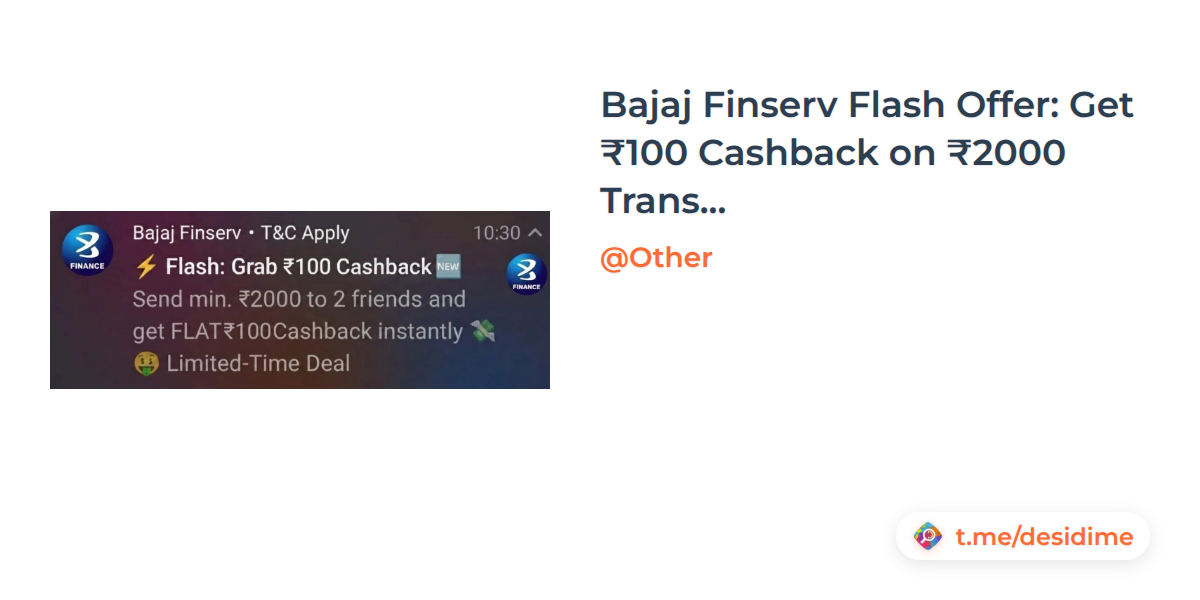Bajaj Finserv Flash Offer: Get ₹100 Cashback on ₹2000 Transfer to 2 Friends (May be User Specific)
