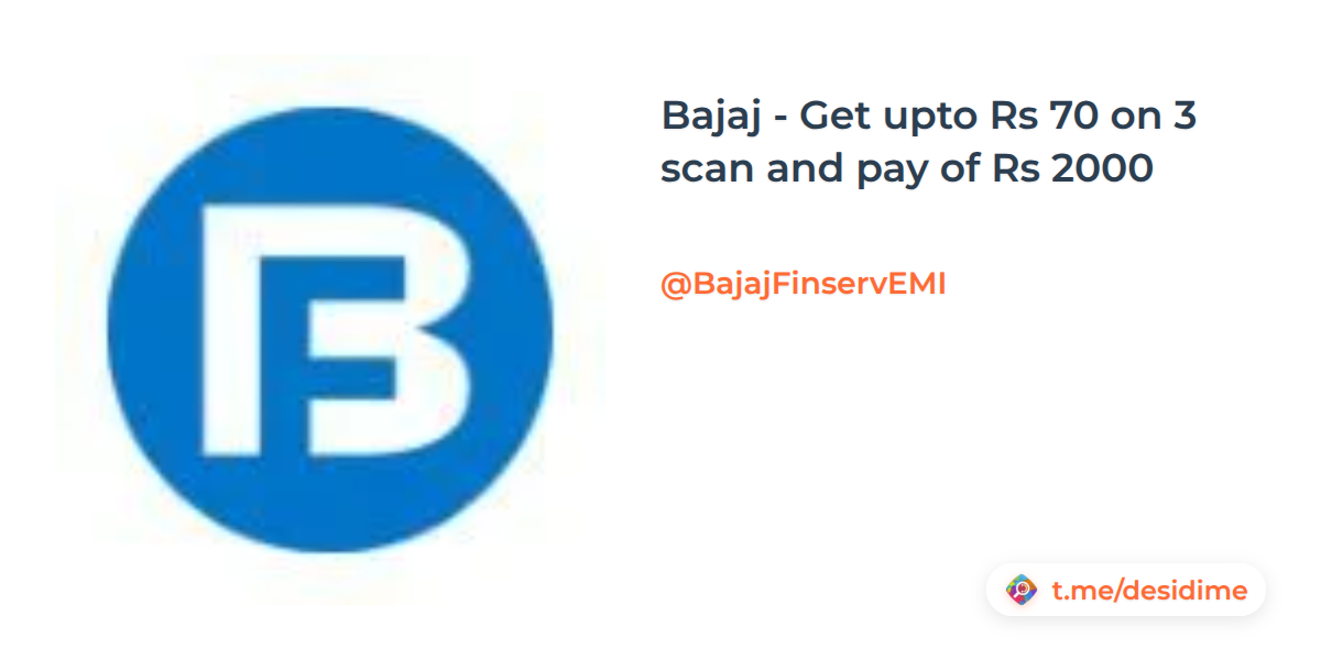Bajaj - Get upto Rs 70 on 3 scan and pay of Rs 2000