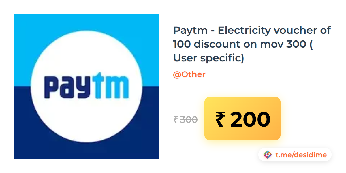 33% off on - Paytm - Electricity voucher of 100 discount on mov 300 ( User specific) - Rs. 200