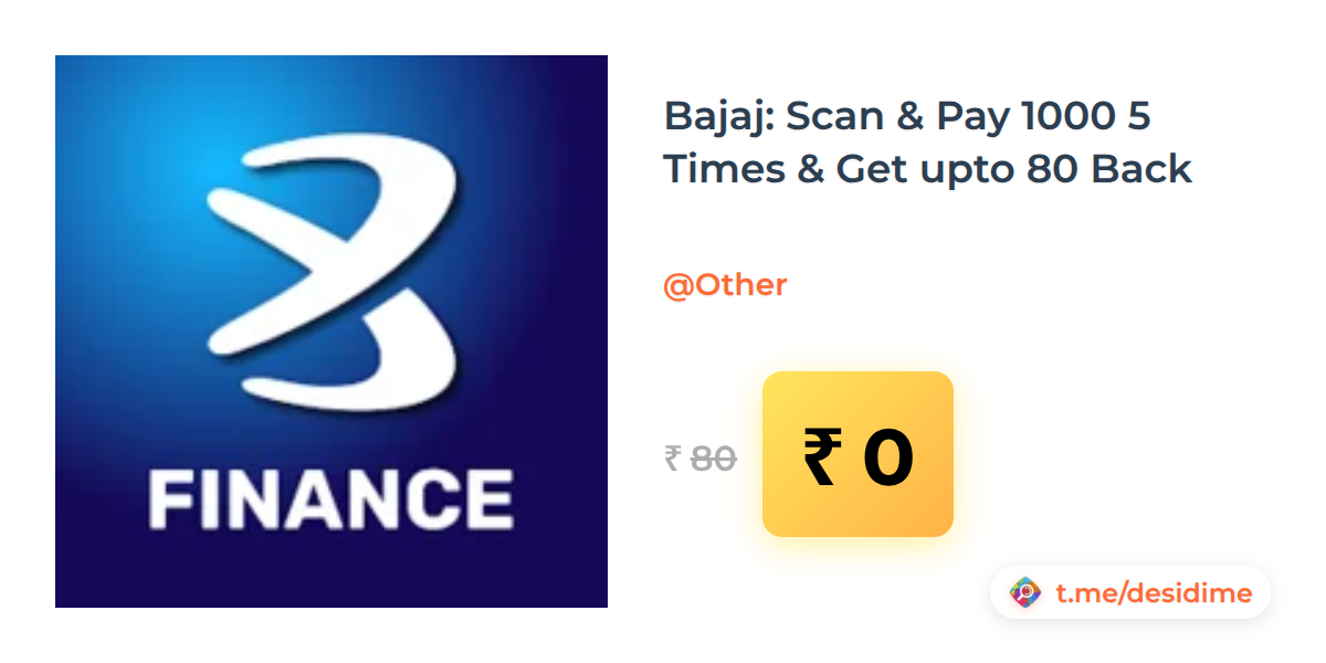 100% off on - Bajaj: Scan & Pay 1000 5 Times & Get upto 80 Back - Rs. 0