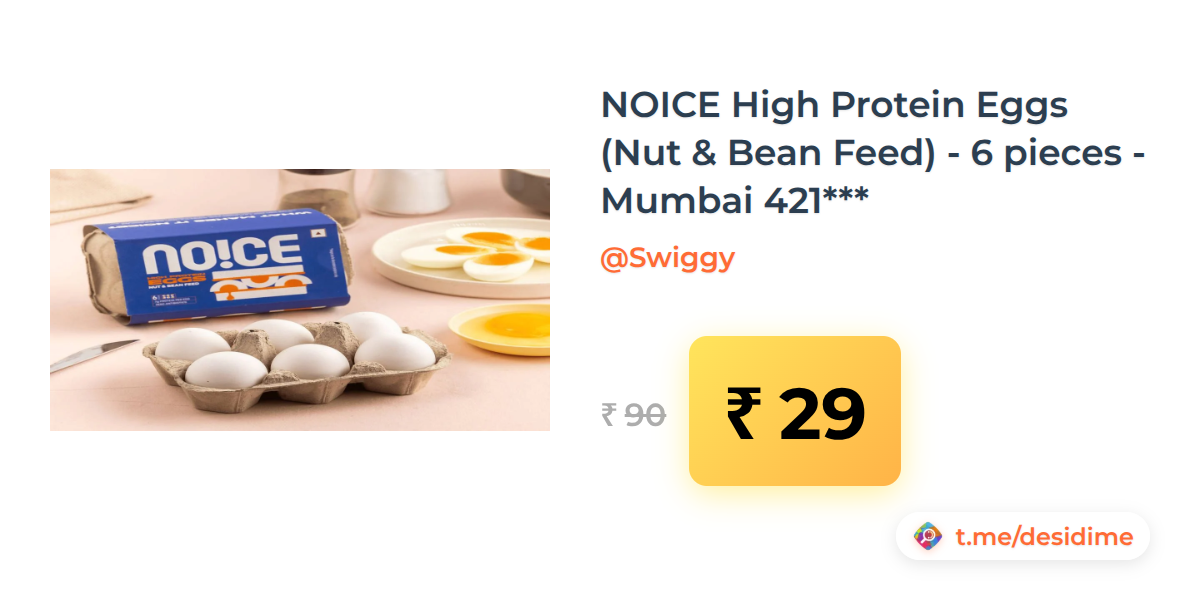 68% off on - NOICE High Protein Eggs (Nut & Bean Feed) - 6 pieces - Mumbai 421*** - Rs. 29