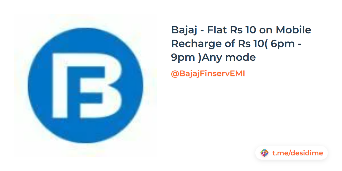 Bajaj - Flat Rs 10 on Mobile Recharge of Rs 10( 6pm - 9pm )Any mode