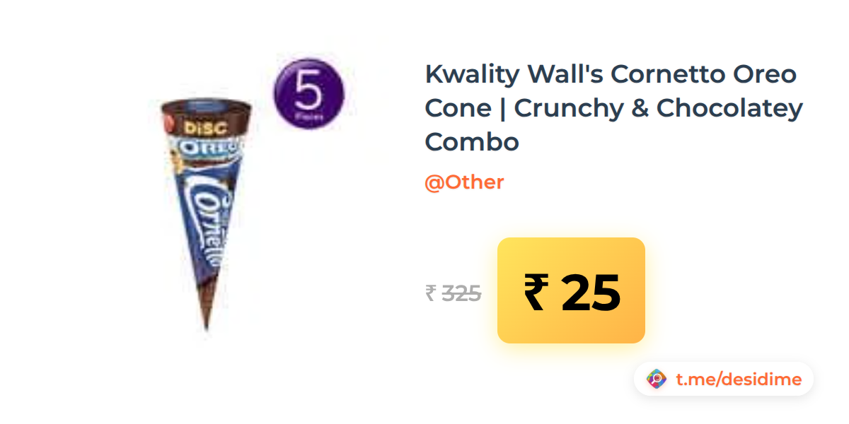 92% off on - Kwality Wall's Cornetto Oreo Cone | Crunchy & Chocolatey Combo - Rs. 25
