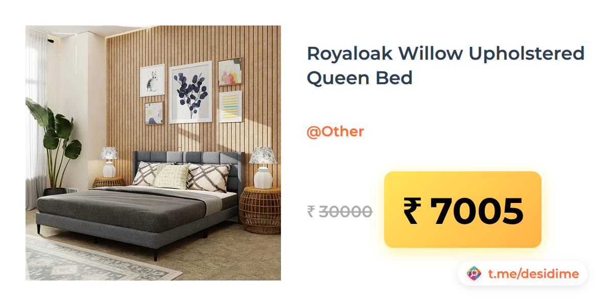77% off on - Royaloak Willow Upholstered Queen Bed - Rs. 7005
