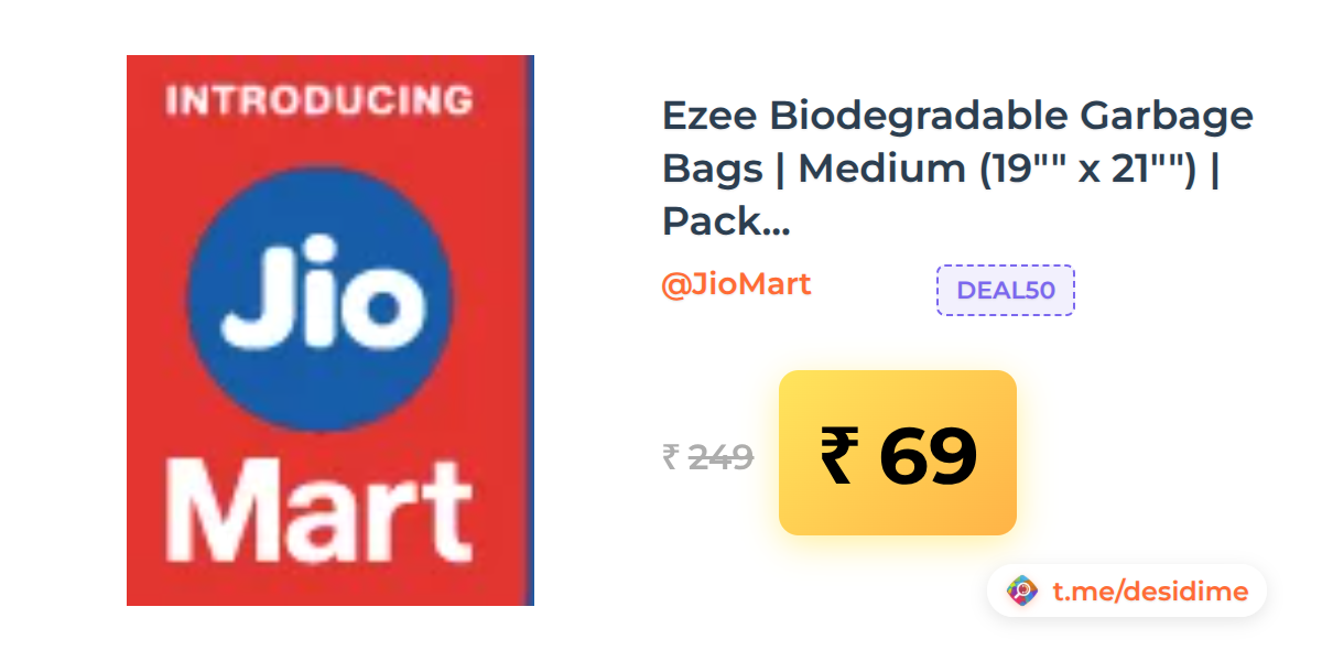 72% off on - Ezee Biodegradable Garbage Bags | Medium (19"" x 21"") | Pack of 3 (90 Bags Total) - Rs. 69