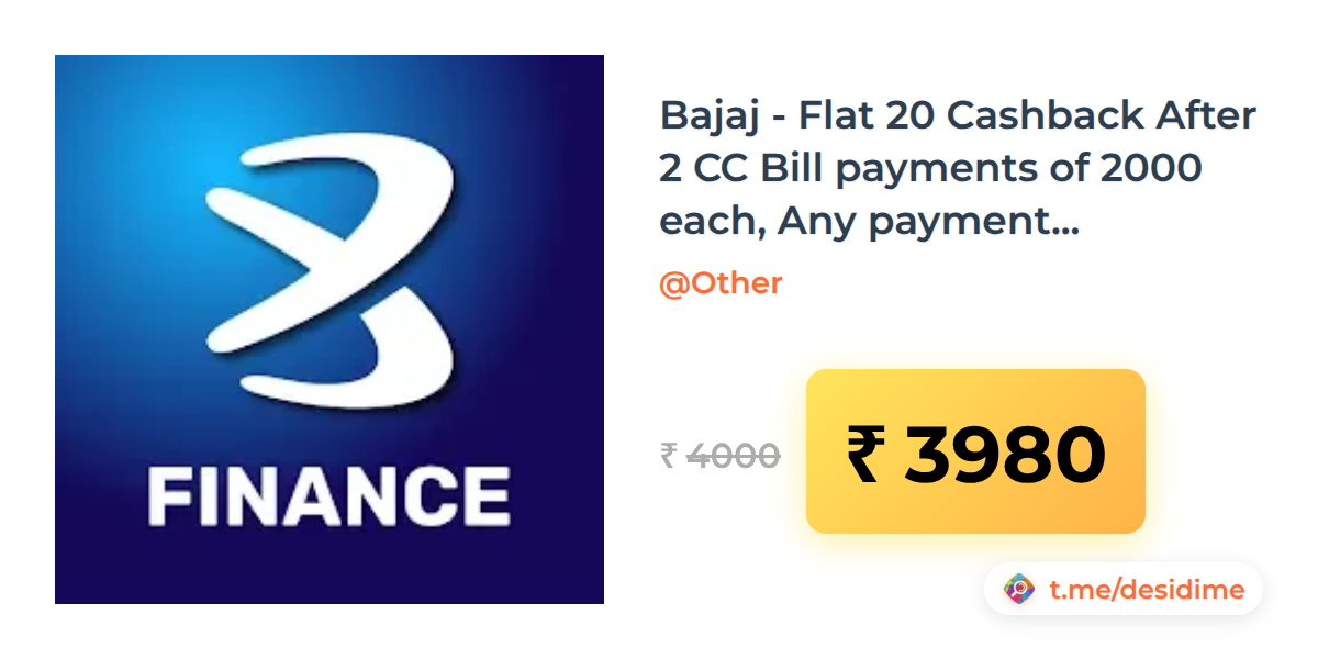 1% off on - Bajaj - Flat 20 Cashback After 2 CC Bill payments of 2000 each, Any payment method - Rs. 3980