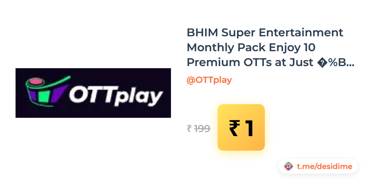 99% off on - BHIM Super Entertainment Monthly Pack Enjoy 10 Premium OTTs at Just ₹1 for 1 Month - Rs. 1