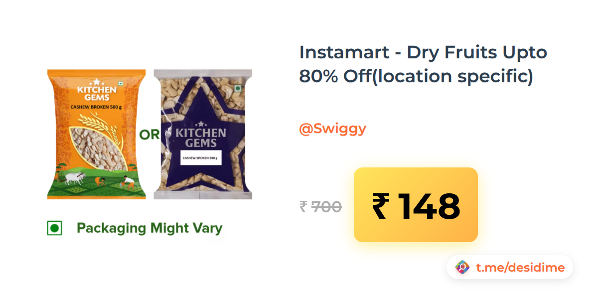79% off on - Instamart - Dry Fruits Upto 80% Off(location specific) - Rs. 148