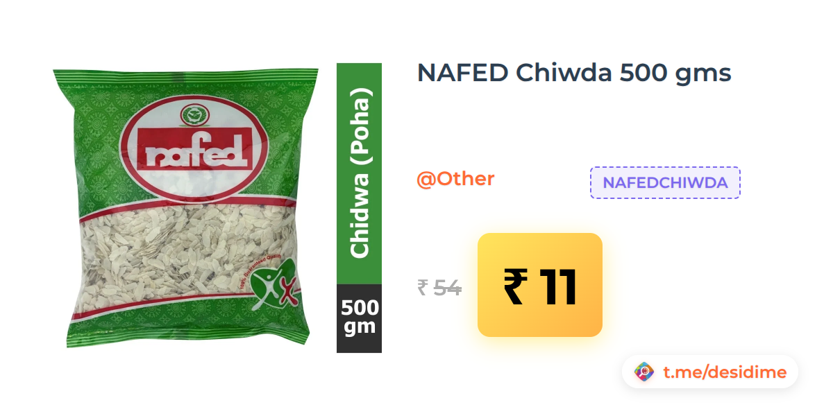 80% off on - NAFED Chiwda 500 gms - Rs. 11