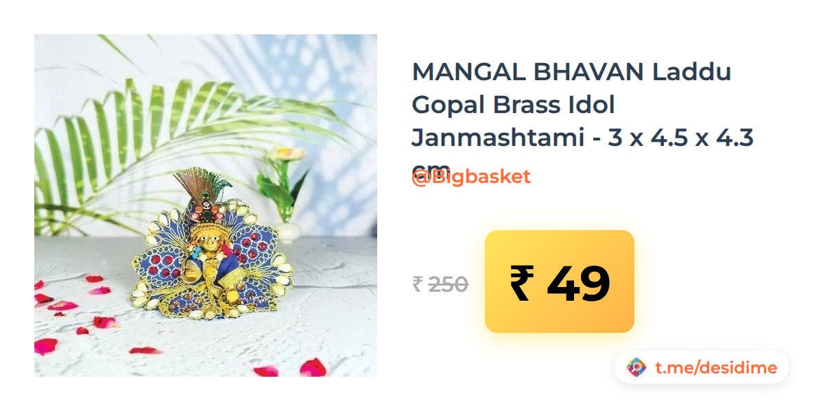 80% off on - MANGAL BHAVAN Laddu Gopal Brass Idol Janmashtami - 3 x 4.5 x 4.3 cm - Rs. 49