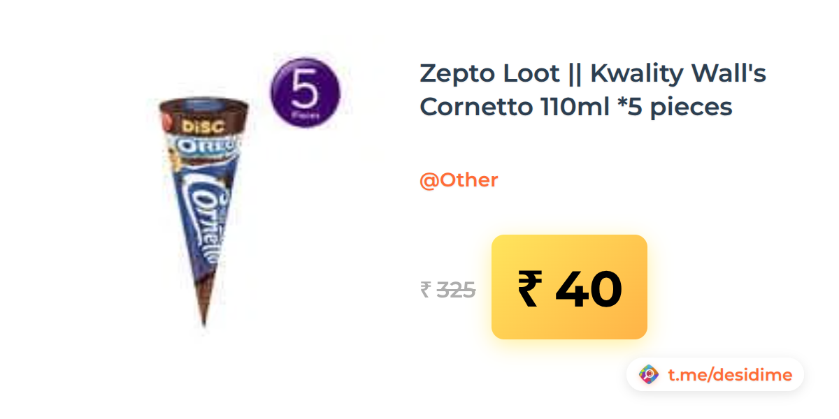 88% off on - Zepto Loot || Kwality Wall's Cornetto 110ml *5 pieces - Rs. 40