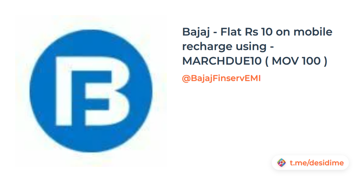 Bajaj - Flat Rs 10 on mobile recharge using - MARCHDUE10 ( MOV 100 )