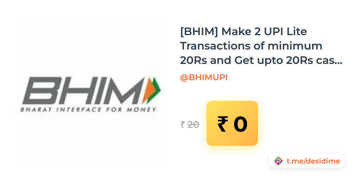 100% off on - [BHIM] Make 2 UPI Lite Transactions of minimum 20Rs and Get upto 20Rs cashback 1pm-6pm (5 March 2026) - Rs. 0