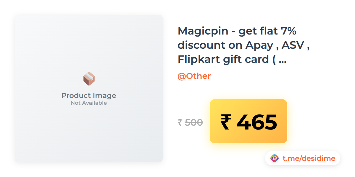 7% off on - Magicpin - get flat 7% discount on Apay , ASV , Flipkart gift card ( UpTo 35rs ) - Rs. 465