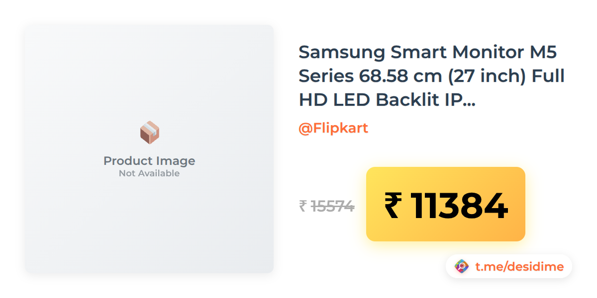 27% off on - Samsung Smart Monitor M5 Series 68.58 cm (27 inch) Full HD LED Backlit IPS Panel with Samsung TV Plus, Speakers, monitor - Rs. 11384