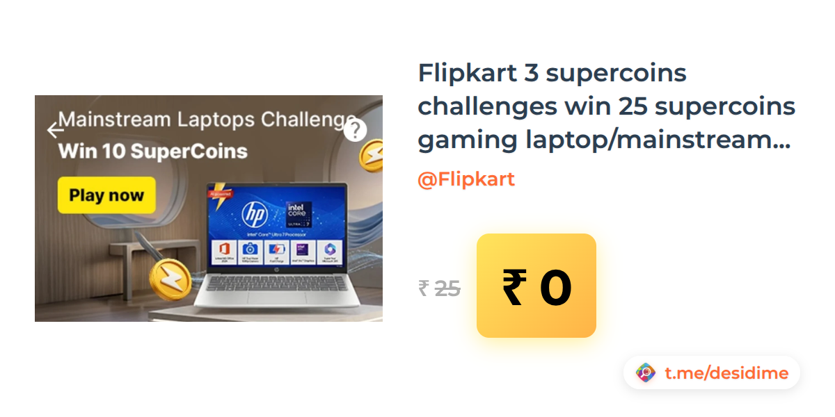 100% off on - Flipkart 3 supercoins challenges win 25 supercoins gaming laptop/mainstream laptop/nike challenge - Rs. 0