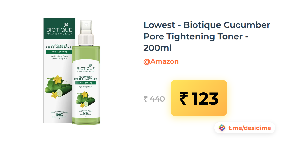 72% off on - Lowest - Biotique Cucumber Pore Tightening Toner - 200ml - Rs. 123