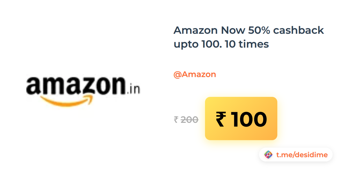 50% off on - Amazon Now 50% cashback upto 100. 10 times - Rs. 100