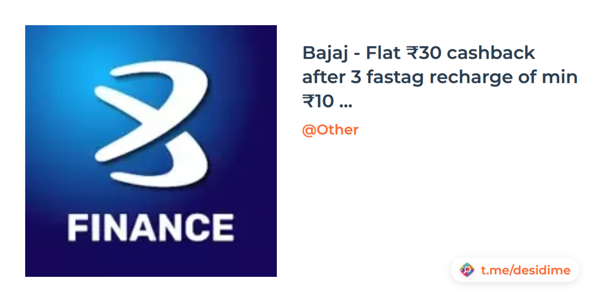 Bajaj - Flat ₹30 cashback after 3 fastag recharge of min ₹10 (9 AM to 12 PM)