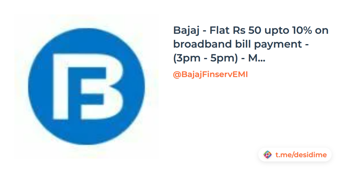 Bajaj - Flat Rs 50 upto 10% on broadband bill payment - (3pm - 5pm) - Mov - Rs 100 ( Any Mode Of Payment)