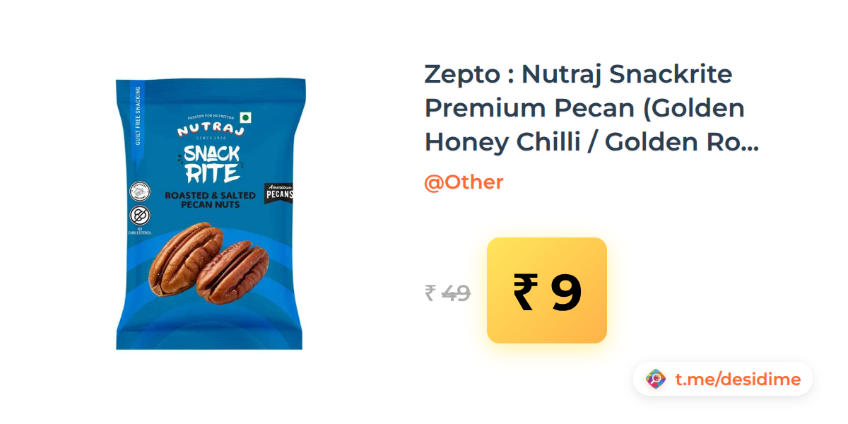 82% off on - Zepto : Nutraj Snackrite Premium Pecan (Golden Honey Chilli / Golden Roast) – Up to 82% OFF - Rs. 9