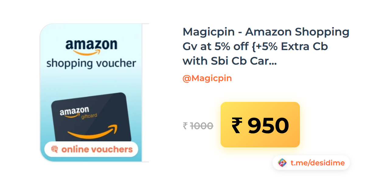 5% off on - Magicpin - Amazon Shopping Gv at 5% off {+5% Extra Cb with Sbi Cb Card} (500 deno, max 10 qty) - Rs. 950