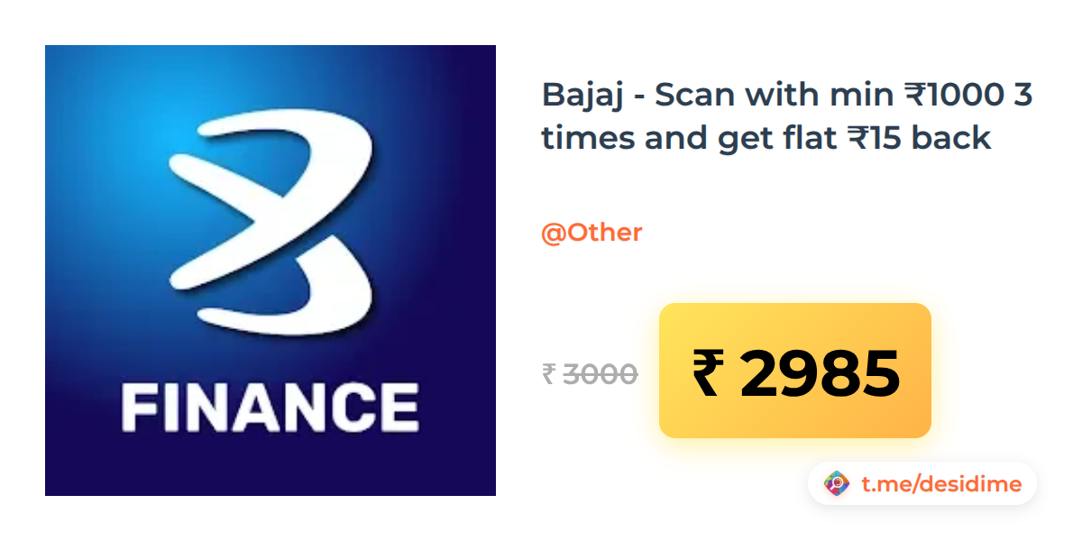1% off on - Bajaj - Scan with min ₹1000 3 times and get flat ₹15 back - Rs. 2985